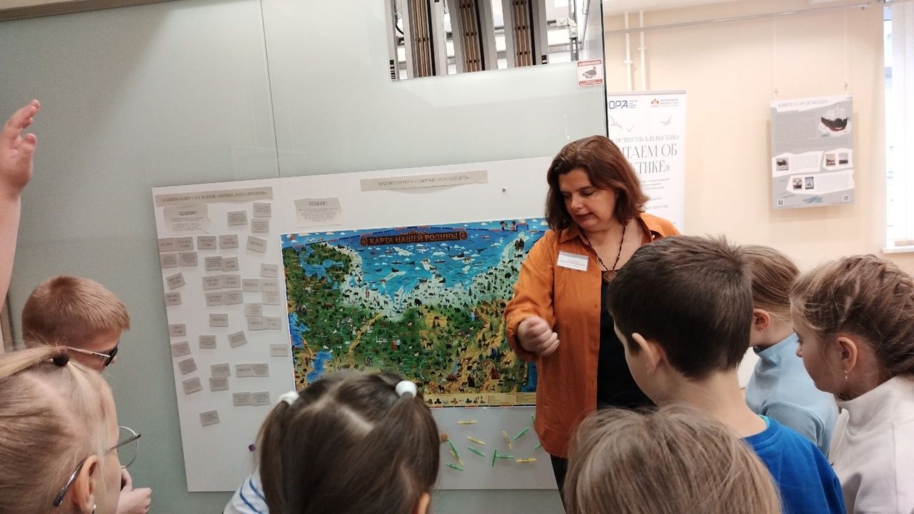 В первый день каникул ребята 3 б класса посетили Национальную библиотеку РК, где побывали на экскурсии "Читаем про Арктику". С интересом слушали информацию об этом суровом крае, узнали, как дрейфовали на льдине и чем занимались папанинцы. Выставка интерактивная. Можно трогать, рассматривать в микроскоп, строить Северный морской путь. Сходите, не пожалеете. Выставка бесплатная.