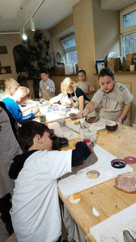 Сегодня 3 б в Гончарной мастерской. Дети узнали про профессию гончара, создавали из глины свои предметы посуды, раскрашивали специальными красками. Работы будут готовы как раз к Новому году. Мастерицы гончарной мастерской их высушат, покроют специальным лаком и обожгут в печи( температура 1000 градусов). Замечательный мастер- класс.