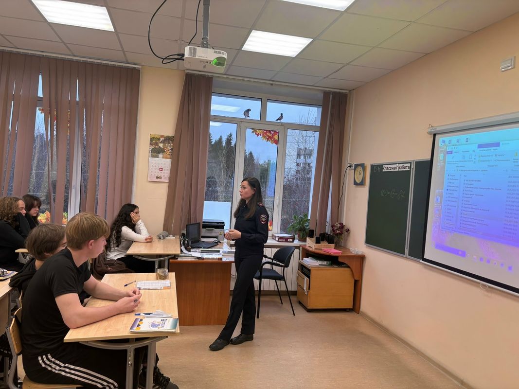 В рамках программы профилактики среди учащихся 9А и 9В классов старший оперуполномоченный Управления по контролю за оборотом наркотиков по Республике Карелия Иевлева Оксана Александровна провела специальные занятия, направленные на формирование здорового образа жизни и предупреждение распространения наркотических веществ. Ребята узнали о последствиях употребления психоактивных веществ, обсудили важность осознанного выбора и укрепления личной ответственности перед собой и обществом.