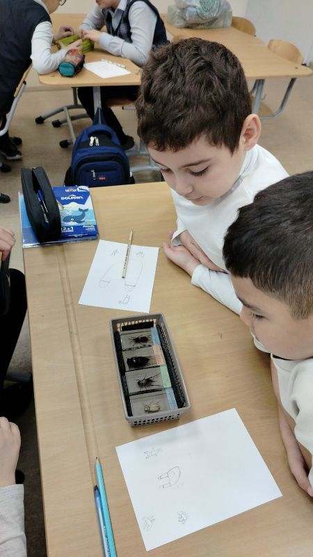 Во время уроков ребята погрузились в исследование жизни самых многочисленных обитателей нашей планеты. Они познакомились с богатой энтомологической коллекцией, включающей разнообразные виды насекомых, включая экзотических представителей, таких как настоящие мадагаскарские тараканы, автомобильчики и палочники.