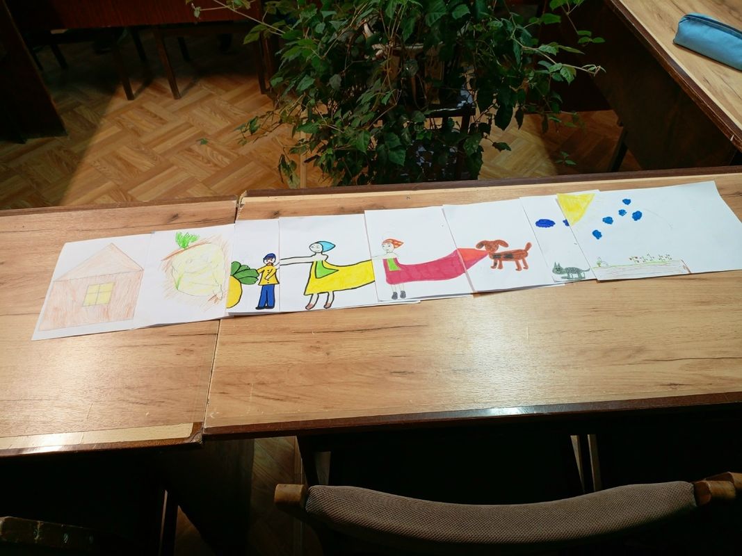 25 ноября ученики 4Д и 4Е классов узнали что это такое, выполняя коллективную работу на коррекционно-развивающем занятии в ОКЦ "Согласие". Под стихотворение Веры Ининой "Репка" им надо было нарисовать иллюстрацию к этой сказке. У каждого был свой фрагмент. Ребята из 4Е справились лучше, т.к. у них один фрагмент плавно переходил в другой.