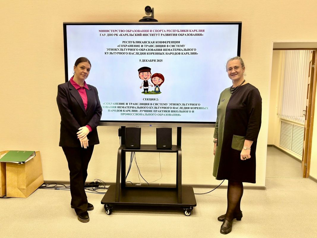 5 декабря заместитель директора по воспитательной работе нашей школы Смирнова Маргарита Сергеевна и учитель музыки Тимофеева Юлия Геннадьевна приняли активное участие в республиканской конференции, посвященной сохранению и трансляции нематериального культурного наследия коренных народов Республики Карелия.