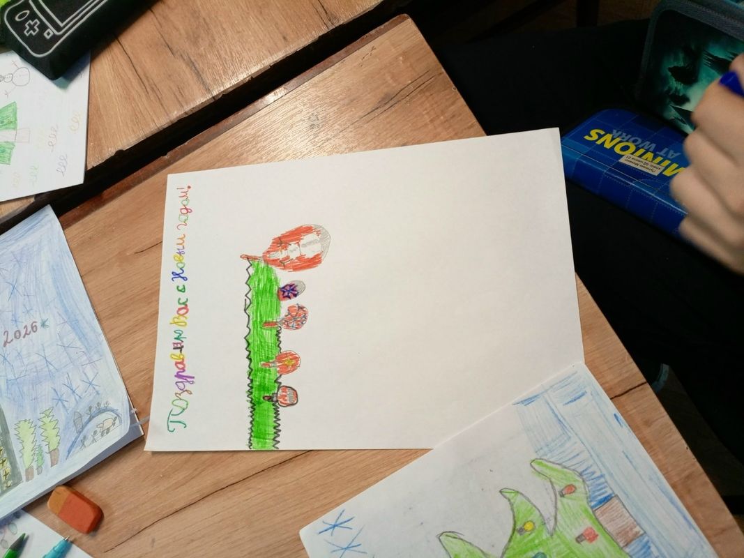 23 декабря у учеников 4 Д и 4Е классов состоялось последнее в этом году коррекционно- развивающее занятие в ОКЦ "Согласие", на котором ребята рисовали новогодние рисунки для волонтеров центра, а Вера Владимировна читала свои прекрасные стихи на новогоднюю тему. В конце занятия обменялись подарками. Ребята подарили Вере Владимировне свои открытки, а она каждому подарила календарики на 2026 год и вручила учителям Приглашение для ребят на новогоднюю елку, которая состоится 4 января в 14.00 в ОКЦ "Согласие"