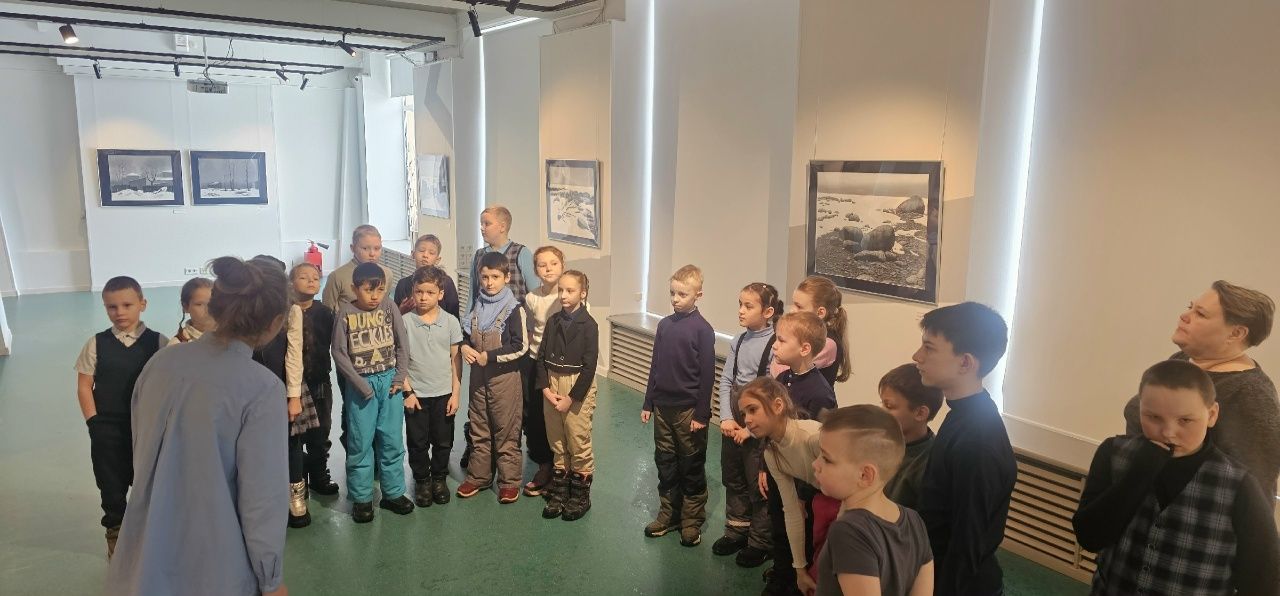 Куратор выставки Майя Савчук провела для детей захватывающую экскурсию. Она не просто представила картины, но и вовлекла юных зрителей в игру, загадывая тематические загадки. Это помогло первоклассникам прочувствовать суровую, безмятежную красоту Севера и понять: жизнь всегда берет верх, а тепло обязательно придет.