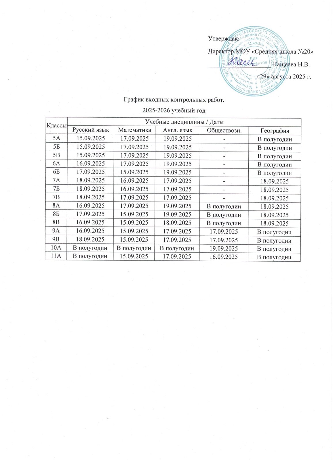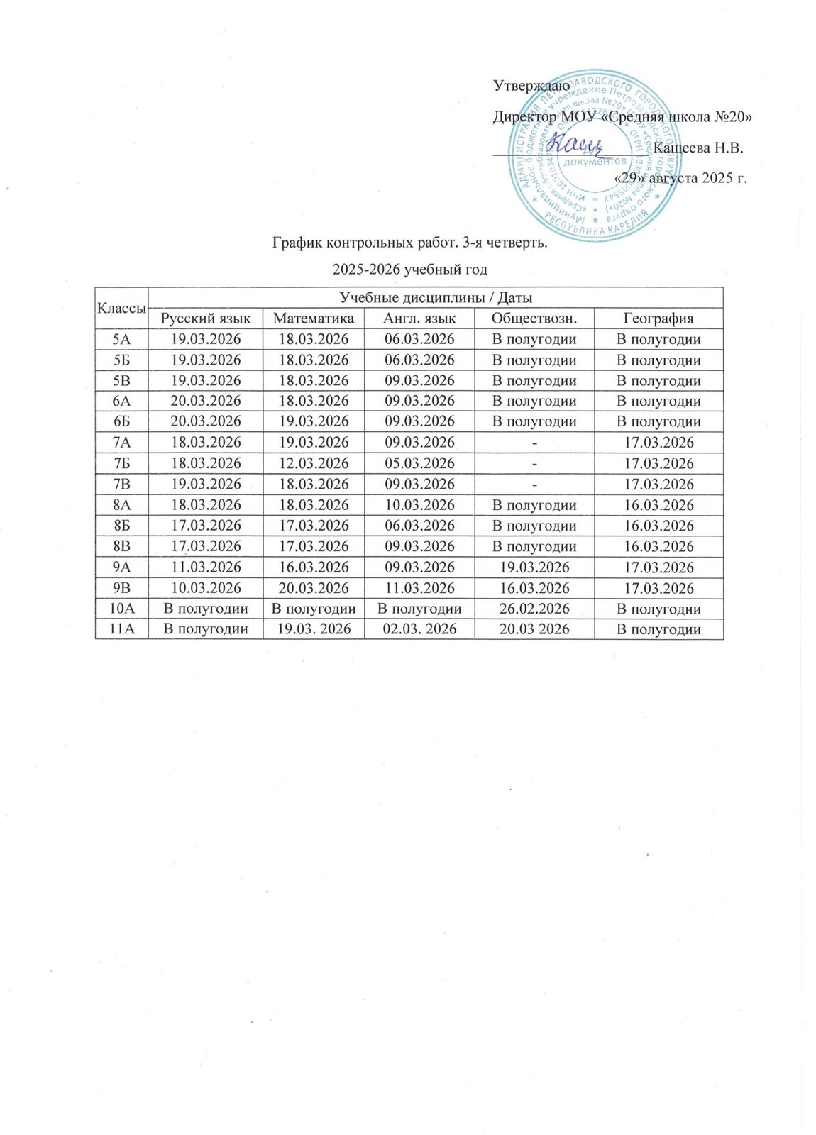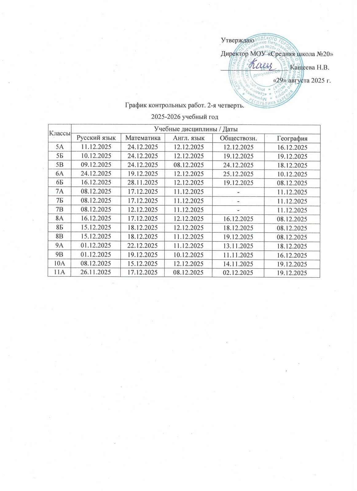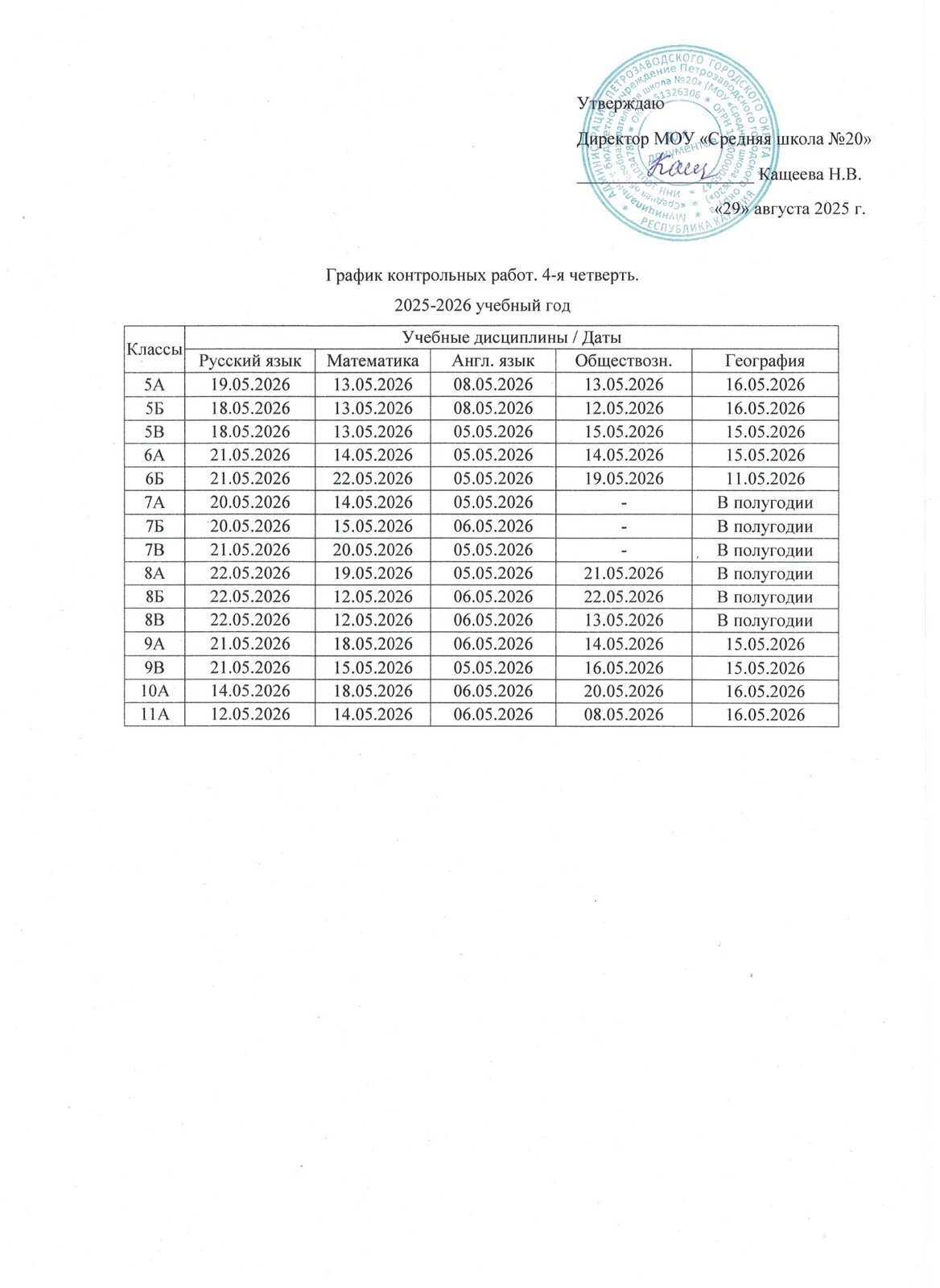 Приказ об утверждении образовательных программ МОУ СОШ №20